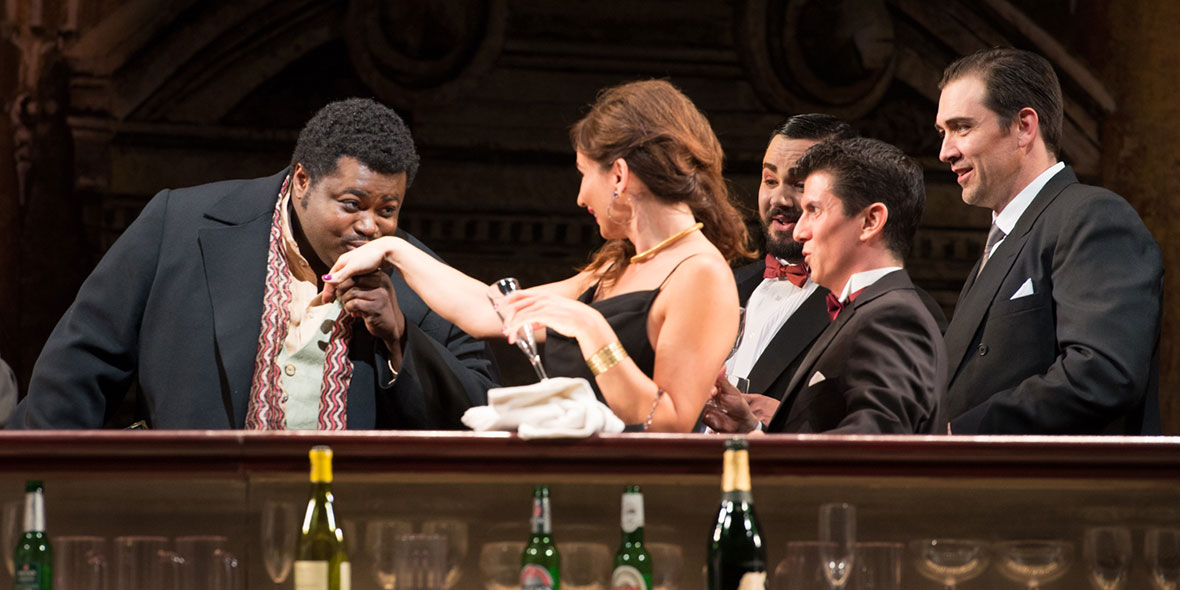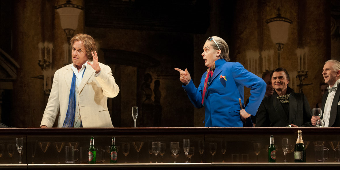 EPILOGUE. Hoffmann has been telling stories through the entire second act of Stella's performance, and when she comes by the tavern, she finds him a bitter, self-pitying, drunken mess. She leaves on the arm of Councilor Lindorf, who bears an uncanny resemblance, in voice and appearance, to Coppélius, Miracle, and Dapertutto. But still faithful to Hoffmann is Nicklausse, who turns out to be the Muse of Poetry. Women may fail Hoffmann, but art will never desert him.