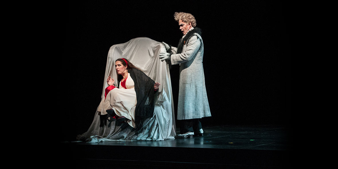 ANTONIA. Some years later, Hoffmann was found romancing Antonia, a girl from a musical family: her father, Crespel, was a violin-maker and her mother a great soprano who died of a strange disease that made singing lethal for her. Crespel kept Antonia healthy by locking her away in his middle-class house, away from admirers like the poet Hoffmann, who might encourage her to sing, and away from the wicked Dr. Miracle, the quack whose tinctures and potions only hastened his wife's untimely demise. But Hoffmann and Miracle found their way to Antonia nevertheless. When Hoffmann finally understood Antonia's predicament, he offered to marry her and set up an orderly household, like that of her father. But Miracle told Antonia she would be a fool to deny the world her beautiful voice, to silence herself for the sake of bourgeois respectability. The portrait of Antonia's dead mother came to life and implored her daughter to sing. The girl did, and it killed her. Her wretched father made a stab at Hoffmann, whom he blamed for his daughter's death; but Hoffmann's teenage amanuensis Nicklausse saved his life, and the devastated poet escaped.