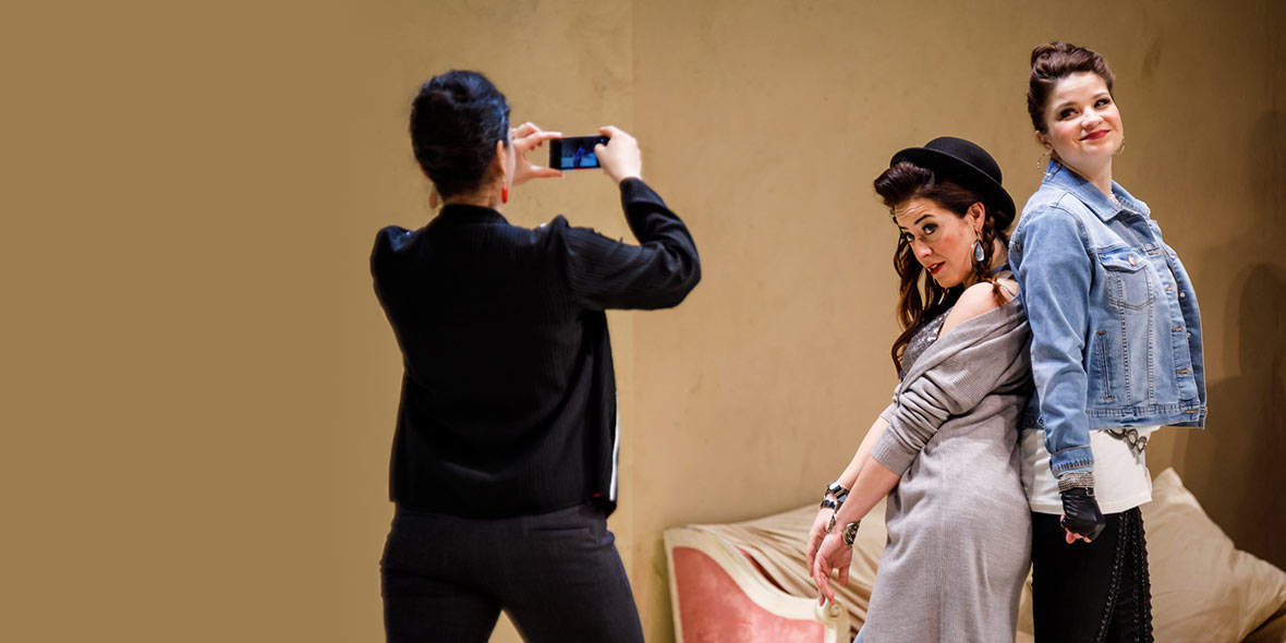 The sisters' personal assistant, Despina, grumbles about the injustice of her subservient position as she prepares refreshments for the ladies. Fiordiligi and Dorabella give way to their overwhelming grief but encounter unexpected advice from Despina, who tries to teach them that men are worthless and replacable. Don Alfonso enlists Despina as an accomplice in his plan to console the sisters in their lovers' absence by introducing them to two handsome, exotic visitors.
