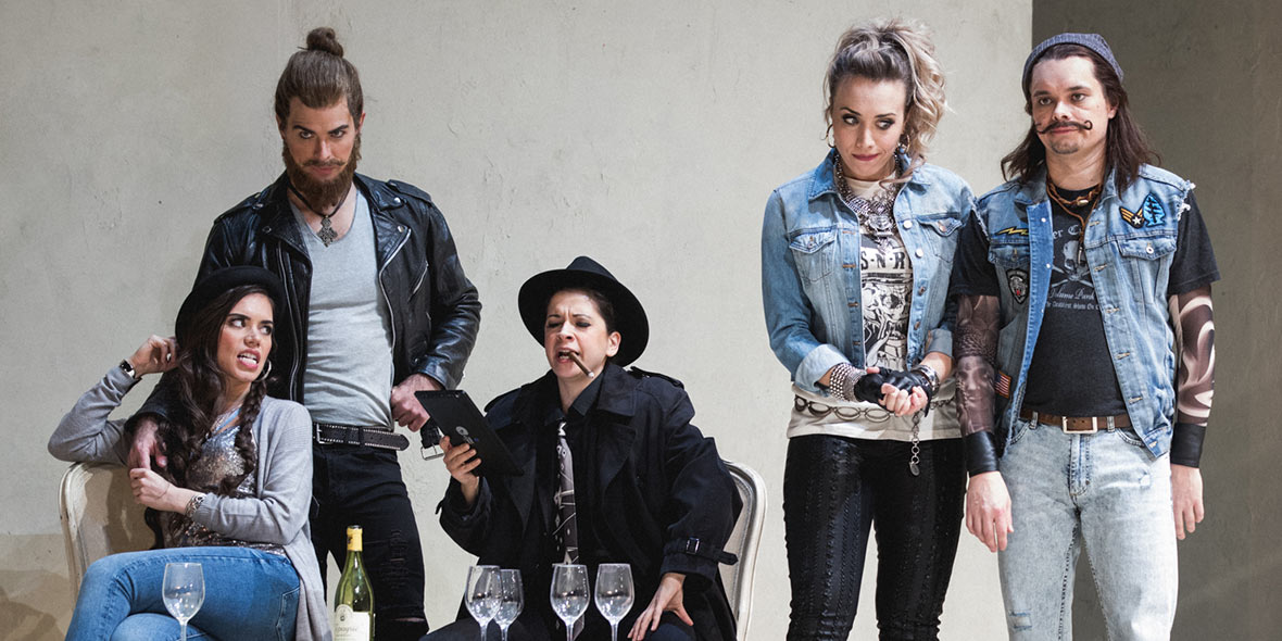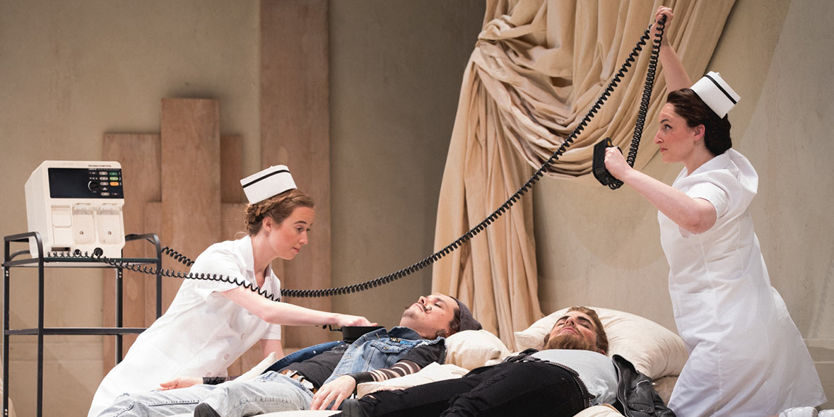 Later that day, the men stage a fake suicide by poison to excite the sympathy of Fiordiligi and Dorabella. The sisters call for Despina, who runs off with Don Alfonso to fetch a doctor. Despina returns in a doctor's disguise and “cures” the stricken men. Though now interested, Fiordiligi and Dorabella refuse to kiss the strangers to seal the joy of their recovery.