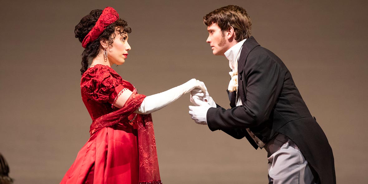 Against his better judgment, Onegin accompanies Lensky to a party celebrating Tatyana’s name day. Onegin dances with Tatyana but becomes increasingly irritated by the gossipy old neighbors, whom he overhears maliciously discussing him and Tatyana. An elderly French fop, Monsieur Triquet, sings a song he has composed honoring Tatyana. Onegin decides to punish Lensky for dragging him to this miserable party by flirting with Olga. Enraged, Lensky challenges Onegin to a duel. Onegin reluctantly accepts the challenge.