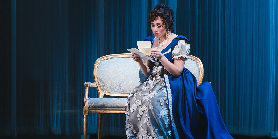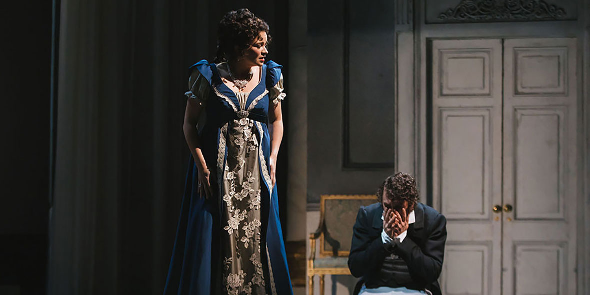 Prince Gremin’s Palace in St. PetersburgFive years later, Onegin, who fled Russia after the duel, returns to the imperial capital and attends a ball. He reflects on the emptiness of his life and his remorse for killing Lensky. Prince Gremin, Onegin’s wealthy older relative, enters and introduces his wife. Onegin is astonished to see that the Prince has married Tatyana. Tatyana is also surprised to see Onegin, but tries to suppress her emotion. Dazzled by Tatyana’s beauty and nobility, Onegin realizes that he is now in love with her. He decides to write to her to arrange a meeting.
