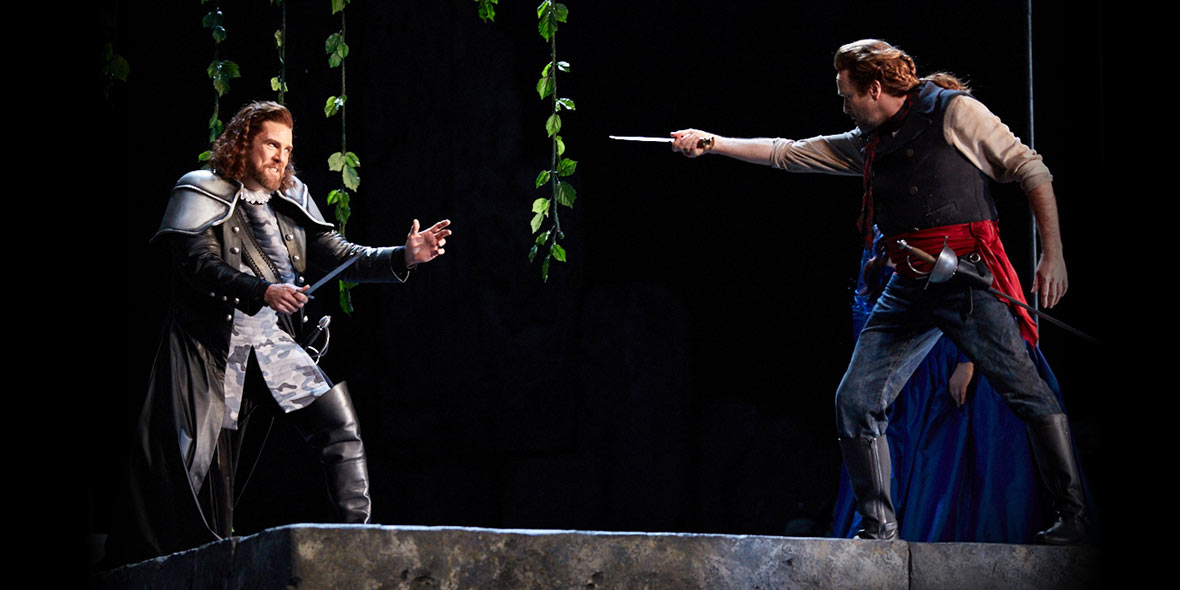 A messenger brings Manrico news that his beloved Leonora, believing him dead, is going to enter a convent. Despite Azucena’s pleading that he stay, he rushes off to find Leonora.