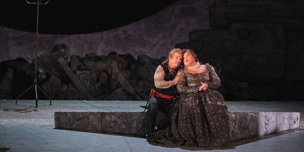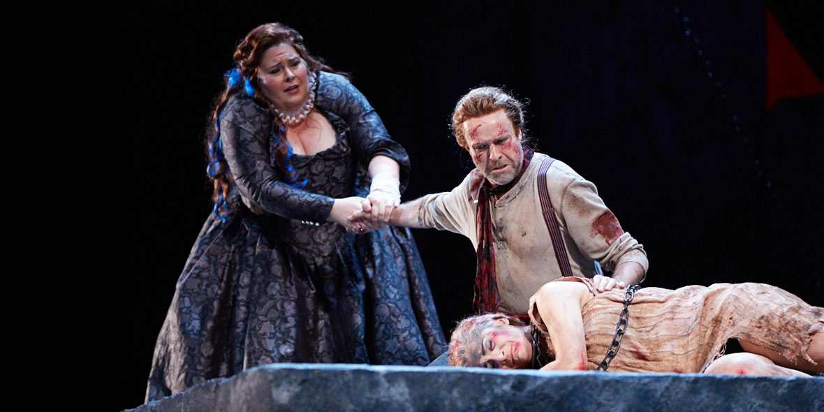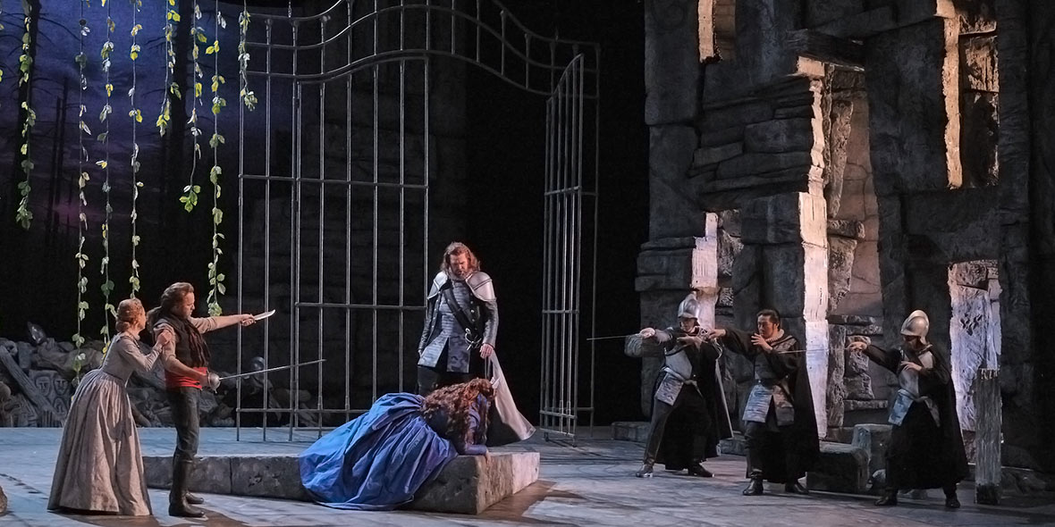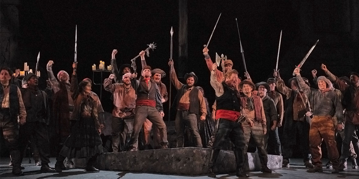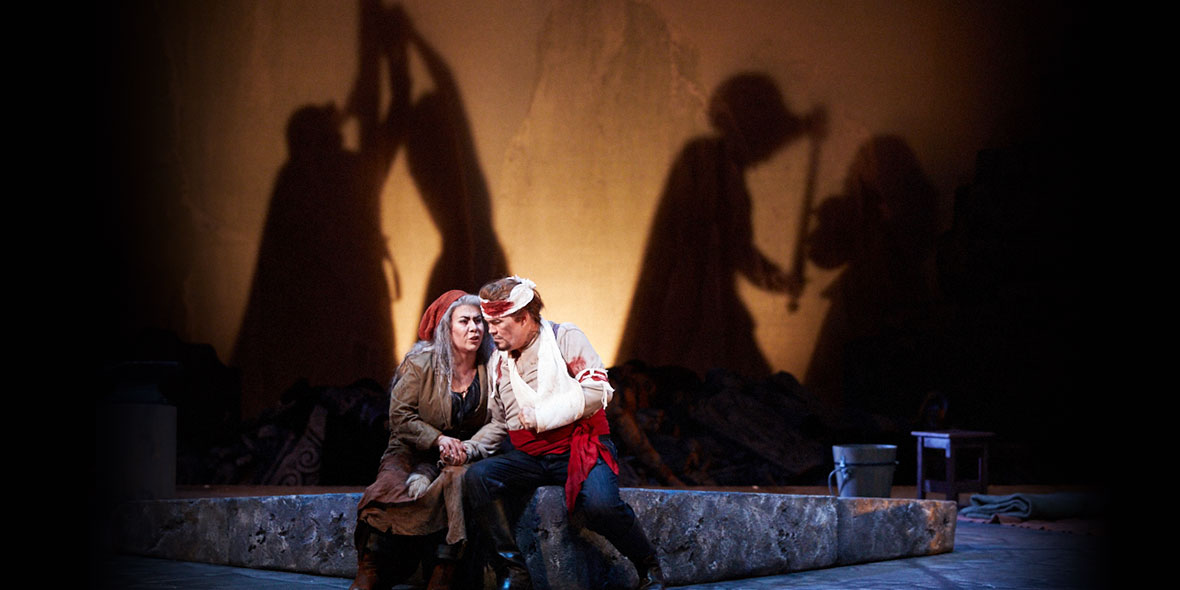 In their prison cell, Manrico tries to comfort Azucena, who keeps seeing the vision of her mother burning at the stake. Leonora comes to release Manrico, who guesses at the bargain she has struck with di Luna. Outraged by what he perceives as her infidelity, he refuses to flee, despite her entreaties. Only when she succumbs to the poison does he understand what she has done. Di Luna enters the prison as Leonora dies in Manrico’s arms, and the Count forces Azucena to watch Manrico’s execution. Azucena tells the Count that he has murdered his brother. Her mother is finally avenged.