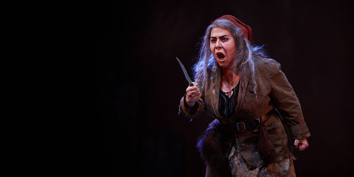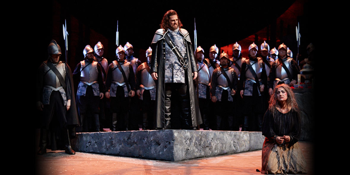 Di Luna’s men prepare to attack the fortress where Manrico has taken Leonora. They find Azucena, who is wandering nearby desperately searching for her son. She is brought to the Count and Ferrando recognizes her as the witch who killed the Count’s infant brother. In desperation, Azucena screams for help, yelling her son’s name. The Count realizes she is Manrico’s mother. Di Luna has her tortured, setting in motion a plan that he hopes will trap his rival and avenge his dead brother.