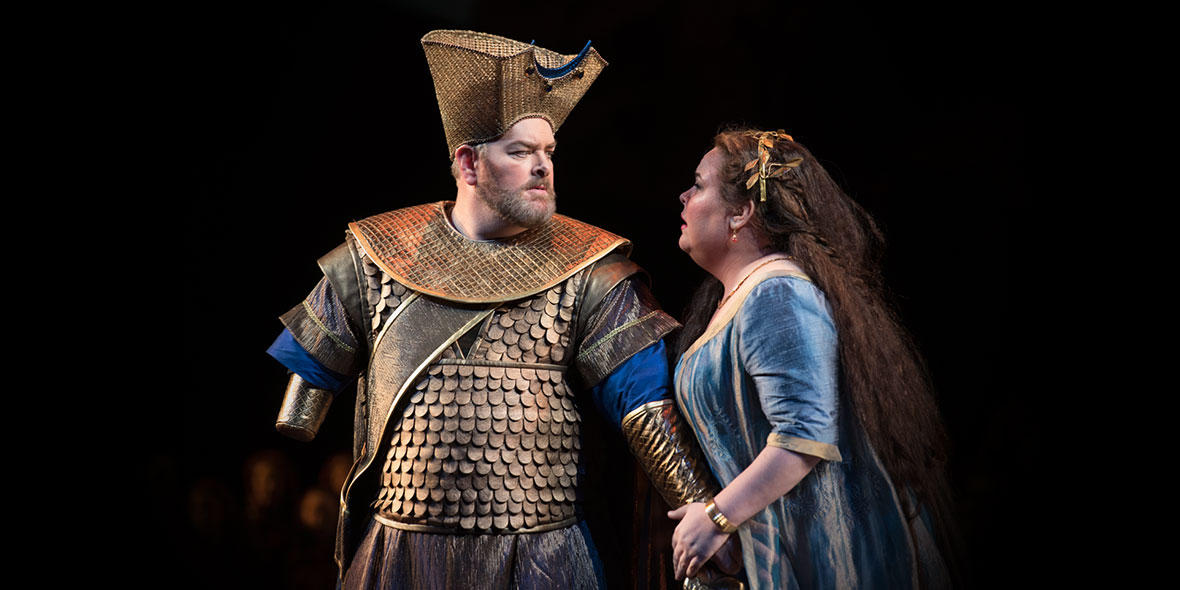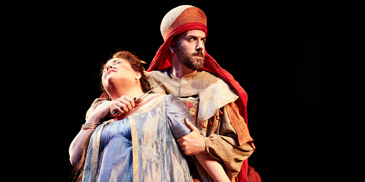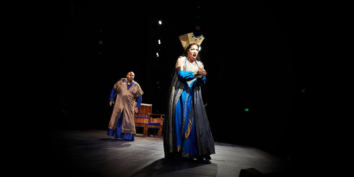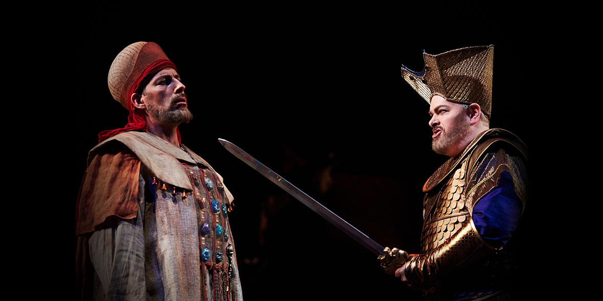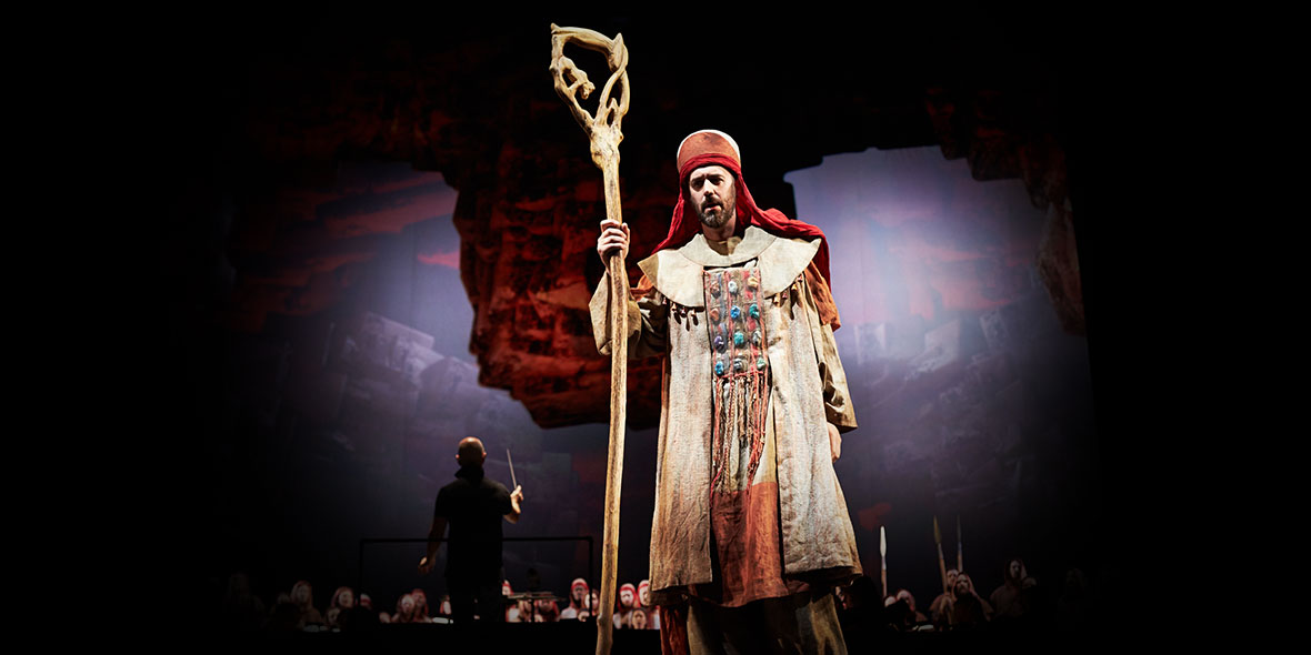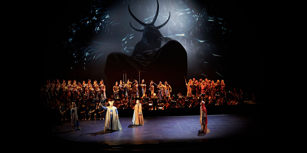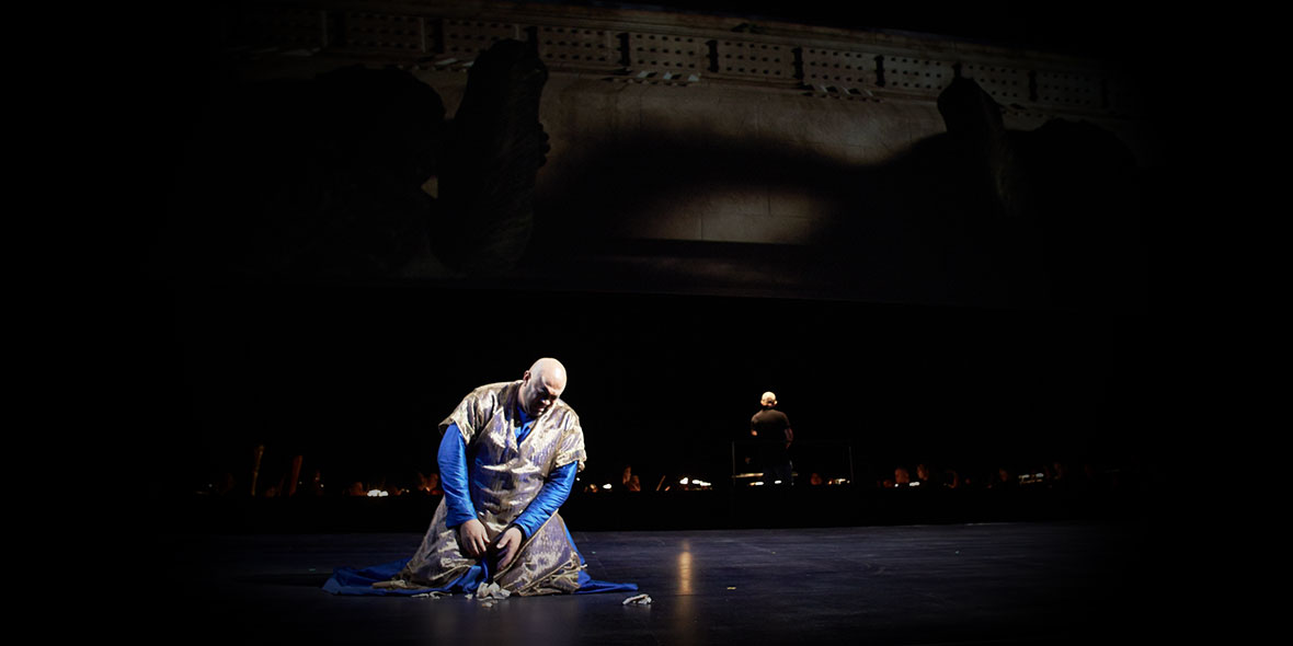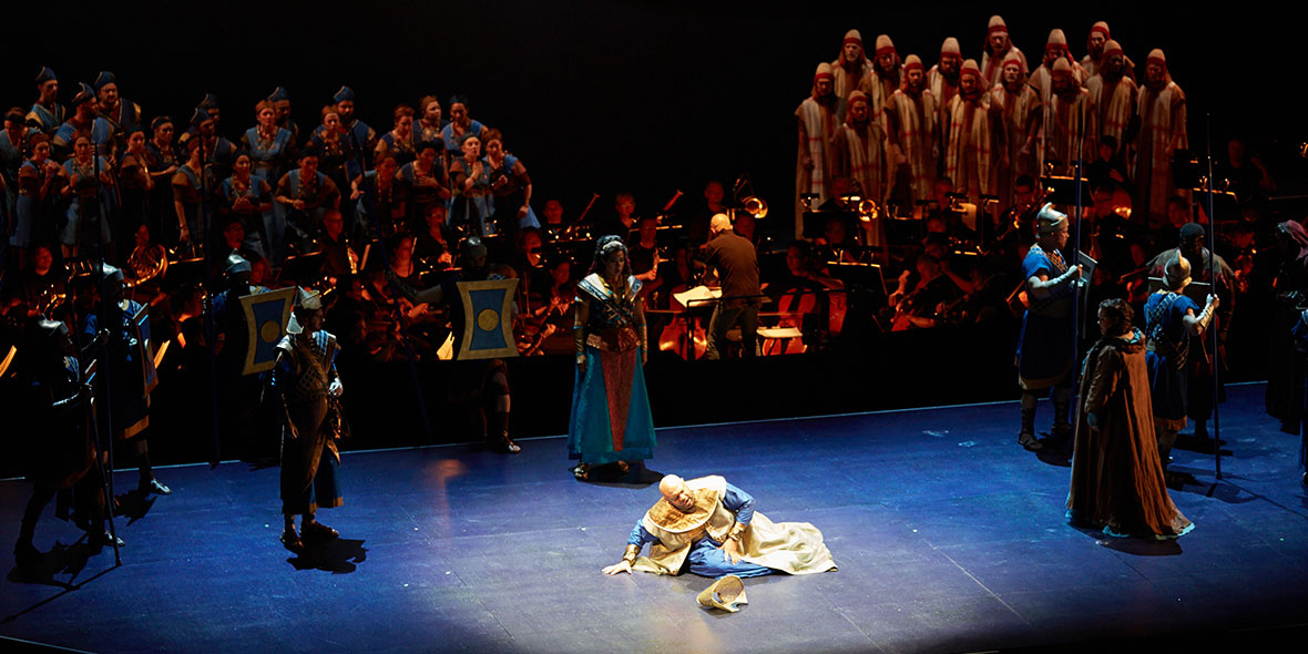 The rumor that Nabucco is dead reaches the palace. Supported by the Babylonians, Abigaille demands the crown from Fenena. But at that moment Nabucco himself enters. He declares that he is no longer king—he is god. A thunderbolt strikes him down; the crown falls from his head and he goes mad. Abigaille grabs the crown and proclaims herself ruler of Babylon.