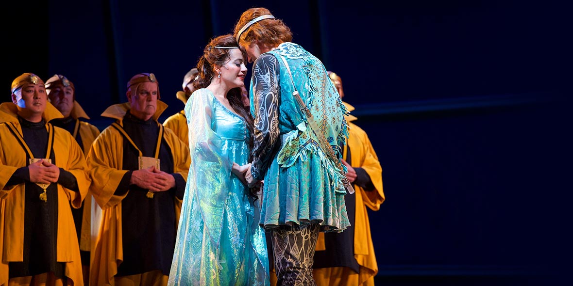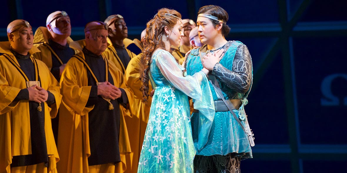 COLORFUL FANTASY. Mozart’s utterly unique extravaganza blends myth, magic, and a remarkable variety of wonderful music to deliver its life-affirming message: love conquers all. A handsome prince and his comical sidekick are given enchanted musical instruments and tasked with rescuing the Queen of the Night’s daughter from a mysterious group of priests. Undergoing trials of virtue, discretion, and charity, they realize that all may not be as it seems in this magical land. Award-winning costumes from the fabulous Zandra Rhodes (The Pearl Fishers) add to the many delights of one of the most fantastic entertainments ever created.