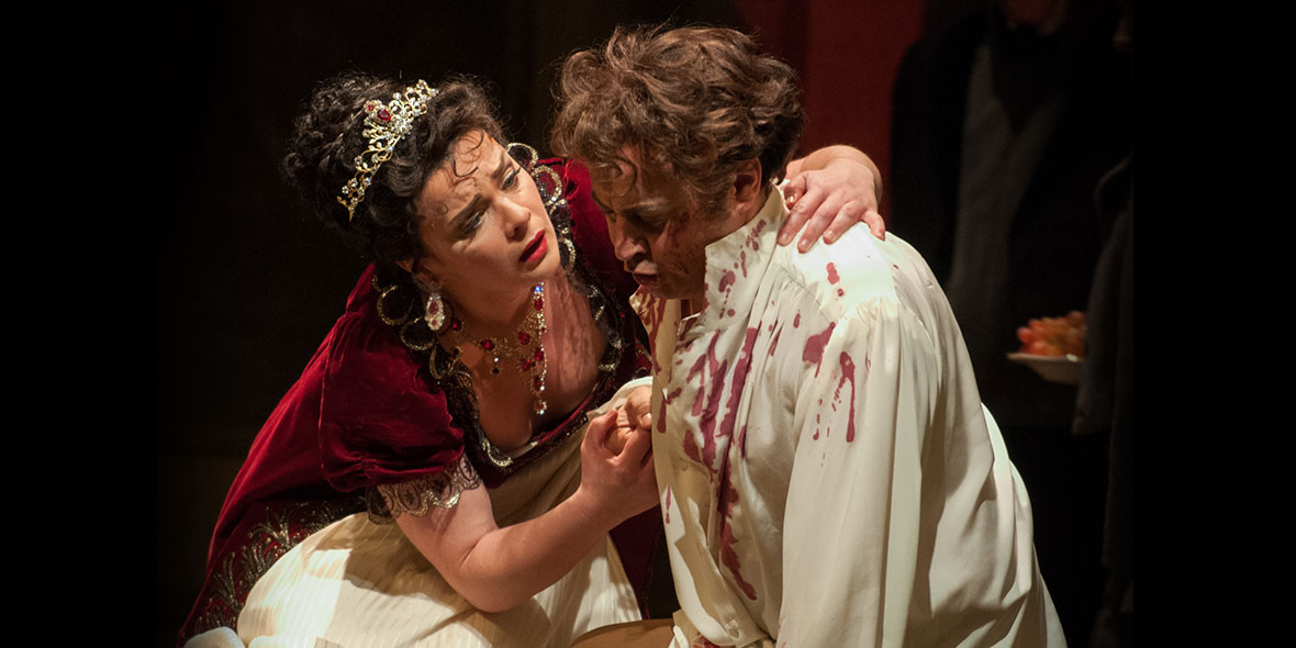 Before dawn, on the roof of the Castel Sant’Angelo, Cavaradossi writes of his love for Tosca. Tosca arrives at the prison with the safe conduct letter and tells Cavaradossi how she killed Scarpia. She then instructs him to feign death before the execution squad. The soldiers come; they shoot; Cavaradossi falls. Tosca waits until the soldiers leave, rushes to Cavaradossi and finds that Scarpia has thwarted her. The bullets were real and Cavaradossi is dead. The police arrive to arrest Tosca for Scarpia’s murder. She mounts the parapet and cries, “Scarpia, we will meet before God” and plunges to her death.