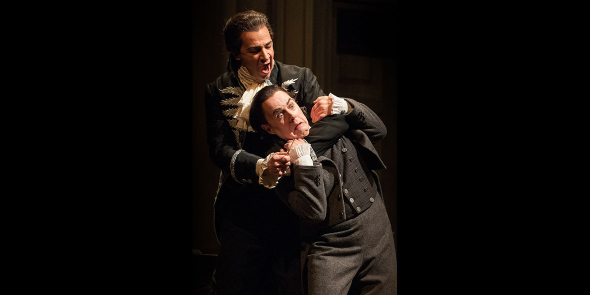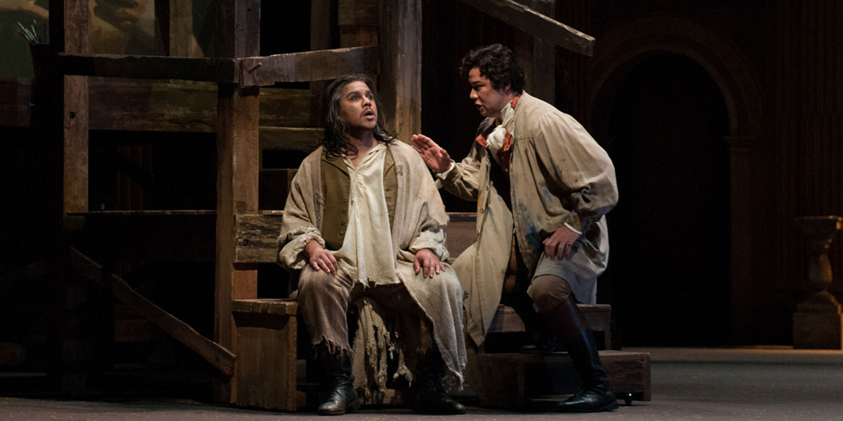 Scarpia, in his headquarters in the Farnese Palace, sends for Tosca. Spoletta arrives with Cavaradossi, and Scarpia interrogates the painter about Angelotti’s whereabouts. He gets nowhere, and sends him off to the torture chamber adjacent to his office. Tosca appears, and her actions reveal to Scarpia that she knows something about Angelotti. He makes her listen to Cavaradossi’s torture. She can’t bear it, and tells Scarpia where Angelotti is hiding. Scarpia cruelly lets Cavaradossi know that Tosca has talked. A message comes that Napoleon has won, and Cavaradossi indulges in a cry of victory and defiance. Cavaradossi is dragged to prison, and Tosca is left to bargain with Scarpia for her lover’s life. Scarpia suggests that Tosca yield herself to him in exchange for the painter’s freedom. Tosca fights off Scarpia and prays to God for help. But, eventually, she agrees to Scarpia’s demands in exchange for a mock execution and a safe conduct pass for her and Cavaradossi. After he has written the pass, Tosca stabs Scarpia and rejoices in his death.