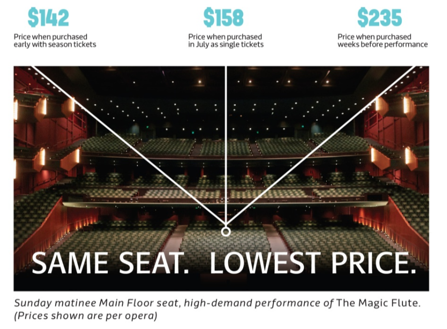 Simply put: enjoy extra special care and exclusive benefits. What's more, purchasing a package now guarantees that you won't be subject to changes in pricing later for high-demand operas. Ticket prices can increase as much as $93 per opera over the cost of purchasing a package for productions like The Pirates of Penzance and Carmen.